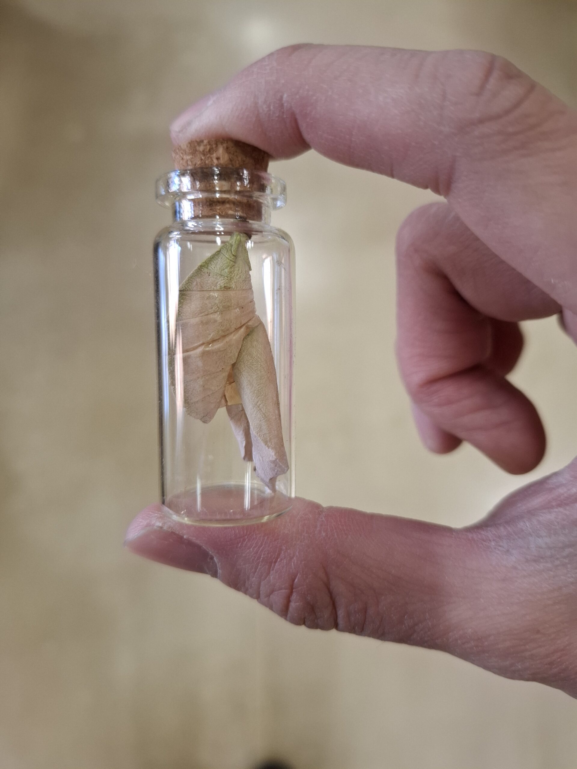 今年の夏に羽化したオオムラサキたちのホンモノの抜け殻を詰めたお守りをご用意しました。